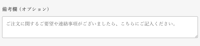 この入力欄の活用例の一つとして、配送タイミングの要望があります。「平日の日中は仕事で受け取りできないから、配送は平日なら午後19 – 21 時の間か、土日を希望できると嬉しい」とか。